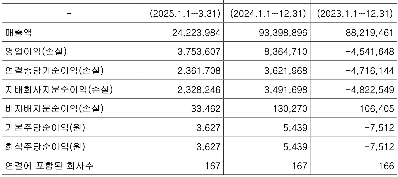 현재 역대실적 | 2025년 1분기 : 매출 24조 원, 영업이익 3.7조 원